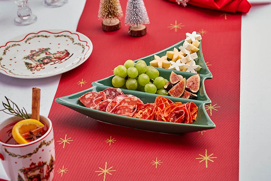 Combina tu vajilla con la colección navideña SANTA para crear un ambiente lleno de magia. Más que un servicio de mesa, tu decoración se convierte en el protagonista que alegra tu reunión y deja huella en la memoria de tus invitados.